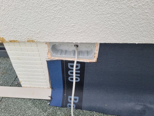 Meine Eigenleistung bestand primär darin, die Schaumüberstände von gestern noch abzuschneiden und die Elektrodosen "fertig" einzukleben. Und neben dem Kamin noch ein Stück Dämmung zu ergänzen, damit das eine einheitliche, schöne Linie ergibt.