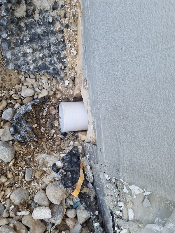 Ablauf das gestern vergessene letzte Stück montiert, damit das Wasser ganz aus dem Gebäude rauskommt. War ned ganz einfach, aber zu zweit und mit viel Glitschi gings dann drauf. Gefälle passen auch :-) Test dann am Abend auch gleich gemacht, Entlüfter in die Abläufe oben entleert und schwupp kams unten raus :-)