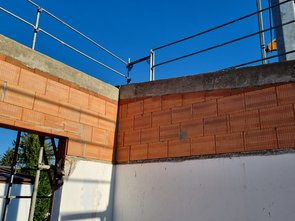 Es war nicht nur Staub ohne Ende, es war eine echte Sch...arbeit! Das Abtrennen ging in 100 Etappen (kleines Stück raustrennen, abschlagen, kleines Stück raustrennen,...) dann doch irgendwie. Die untere Hälfte konnte ich dann in einem Stück abtrennen :-)