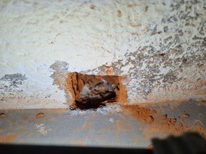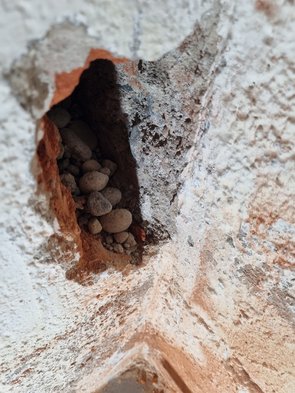 - Küche einen Stein raus um zu prüfen, dass die Wand nicht tragend ist. Es gibt oben bisschen Beton. Was das beweist - keine Ahnung.