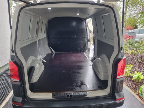Den bummvollen Bus in einer Regenpause (ha, Witz, fünf Minuten nachdem ich angefangen hatte, fings wieder zu schütten an) ausgeladen. Mit Mama alles ins Haus bzw. die Garage rein und Bus Ladefläche gesaugt und kurz gewischt, damit er abgeholt werden kann.