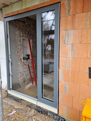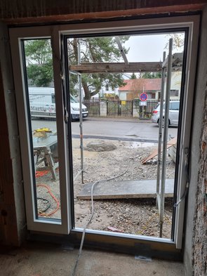 Stunde später gings dann los: erst ruft mich Baufirma an, dann Architekt. Dann Fensterbauer. Ich war in Telko... Dann fing der Stress an: Baufirma war auf 180, weil sie für den Treppenbeton die Schubkarren nicht über Türschwelle schieben wollten (und Tür evtl. beschädigen). Lösung war dann, dass Tür nochmal rausgebaut wurde (war nur leicht drin). Das Kompriband für paar dutzend Euro war mir Wurscht.