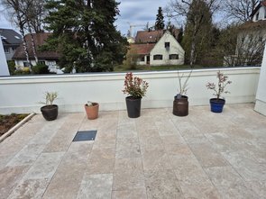 Im Vorgarten unterm Wasserhahn bissl planiert, geschottert und eine Travertinplatte (muss noch überlegen, ob ich die lass, weil vorne ja eigentlich alles Betonstein ist) als Unterlage für den Gartenschlauch montiert. Schaut gleich viel besser aus.