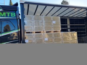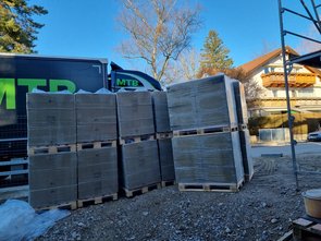 Dann (schon angefangen, während er abgeladen hat) hieß es: 90 Pakete mit insgesamt 14 Tonnen in die TG tragen. War handlicher als die Steico-Trittschalldämmungsplatten und deutlich leichter als die Fassadendämmung :-)