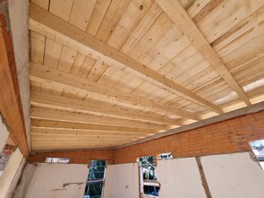 Zimmerer hat geklappt: wir haben wieder ein Dach drauf :-) Rechtzeitig für den für Donnerstag angekündigten starken Regen!
