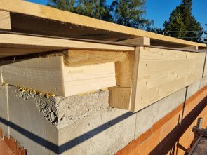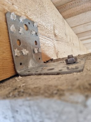 Man beachte das Foto mit dem Winkel: das alte Dach war 0 x mit dem Ringanker verbunden, das neue ist alle ca. 60 cm auf beiden Seiten angebohrt und -nagelt!