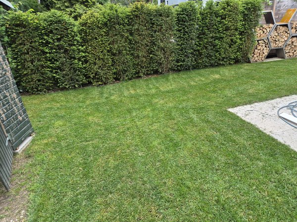Mama hatte die Fläche, wo das Gartenhäusl zwischengeparkt war, schon umgestochen. Ich hab noch den Rest nach vorne und rechts den Rasen abgestochen und den gekauften Samen eingesät. Sollte für 50 m2 reichen. Gefühlt hats ned mal für die 15-20 m2 gereicht. Mal schaun, was da so entsteht! Extra Bienen- und Insektenfreundlich heißt es.