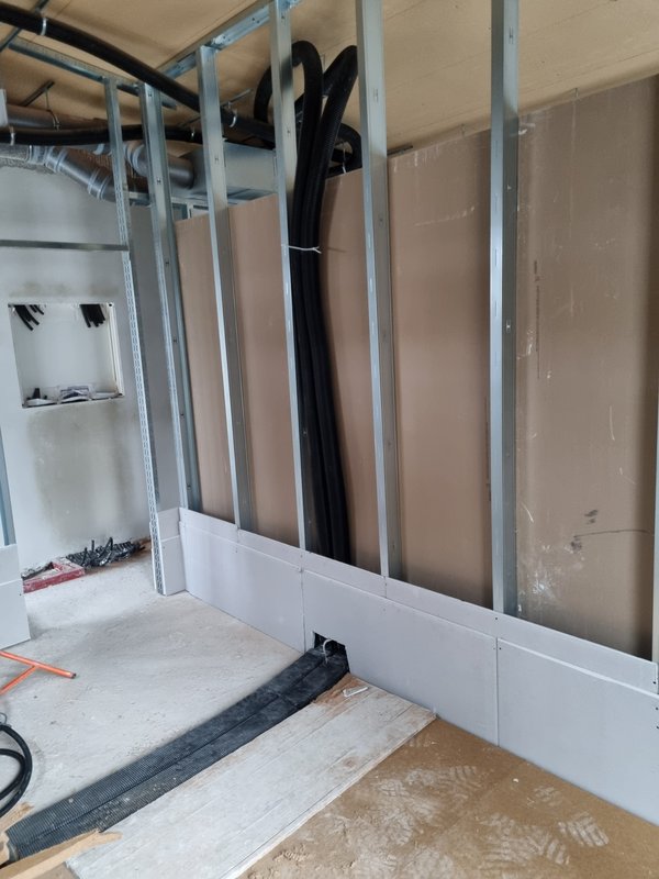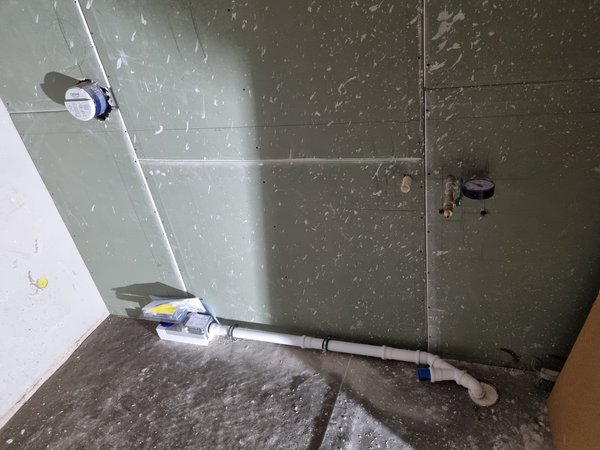 Heizungsbauer war in der Früh kurz da, musste dann aber zu Notfall weg. Mittag kamen sie wieder und haben die vier Lüftungsleitungen im Trockenbau gelegt. Hab leider Küche und Wohnzimmer vergessen, zu fotografieren.