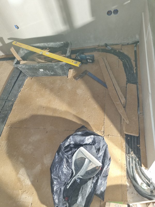 Leider habe ich auch noch einen Fehler gemacht und dachte, ich müsste die recht tief setzen und habe mir kurz unnötig Arbeit gemacht. Nur im EG müssen die auf den Rohbeton. Im OG kommen die auf die erste Trittschalldämmebene. Geht viel schneller.