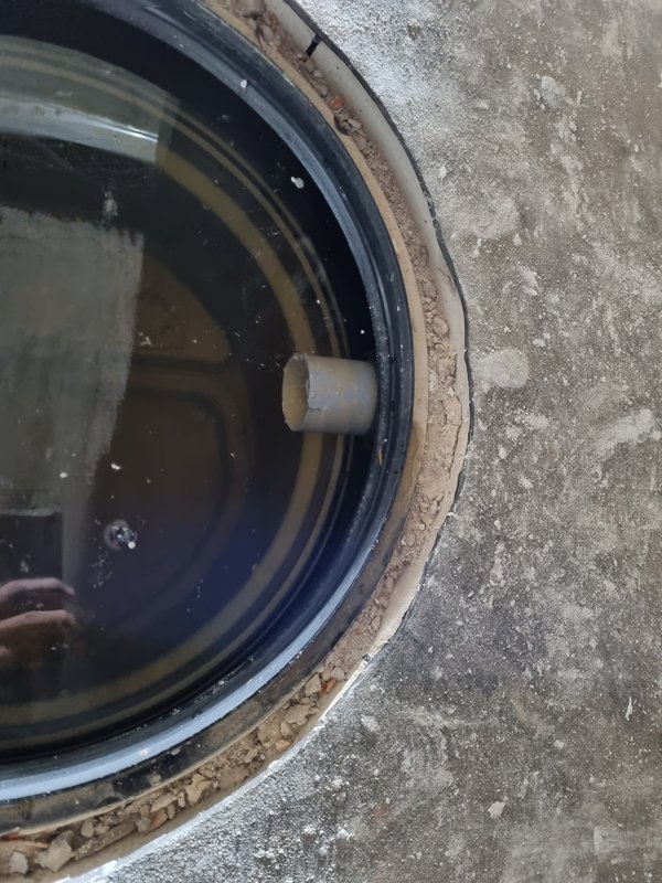 Hebeanlage im Keller-Bad war voll Wasser (wahrscheinlich vom Spültest), also bissl geleert, damit da nix passiert und der Abdichter übernächste Woche den Aufsatz andichten kann.