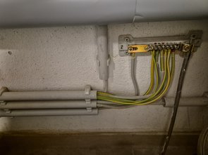 Potenzialausgleich auch gleich gelegt. Bei der Gelegenheit auch gleich noch das überlange Kabel von den Heizungsleitungen gekürzt und gscheit verlegt und noch ein drittes Leerrohr verlegt. Echt krass, was da so alles in einem Haus mit gscheiter Installation zusammenkommt.