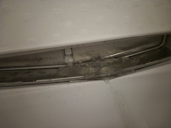 Im EG-Bad hat es nach dem Spülen die letzten Tage immer bissl gegluggert. Heute total gestunken. Ich hatte erst den Rohrbelüfter im Verdacht. Ausgebaut und inspiziert (wartungsfrei), der schaut gut aus und hat sich aus bewegt. Also am Abend die Duschrinne ausgemacht und dann das Unheil gesehen: a) Reinigung war wieder angesagt. b) Viel schlimmer aber: einer der beiden Befestigungsstifte ist abgerissen/abgebrochen. Schaut au swie Edelstahl, kann also eigentlich nicht rosten. Echt seltsam. Muss ich den Hersteller mal anfragen.