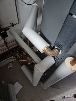 Ein anderer Lieferant vom Sonntag war blitzschnell: Rohrdämmung für die ganz dicken Rohre ist gekommen. Heute bissl was angefangen. Das Klebeband für die Verbindungen von dem Armalok-Zeug hab ich leider immer noch nicht gefunden :-(