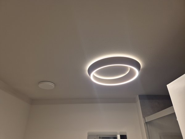 Wenn ich auch dutzende Sachen dieses Jahr nimmer geschafft hab, eine Sache wollt ich noch schaffen: Die Badleuchte war mehr als suboptimal. Ich hatte eine andere bestellt und beim vorletzten Mal in Düsseldorf auch mitgenommen. Die Umbau-LED-Treiber sind auch schon länger da. Heute endlich umgebaut und die alte Leuchte demontiert, die neue angebohrt und gleich montiert und auch noch parametriert. Deutlich besser. Und auch nochmal heller. Leuchte ist das gleiche Modell wie in der Garderobe, nur andere Farbe des Gehäuses.