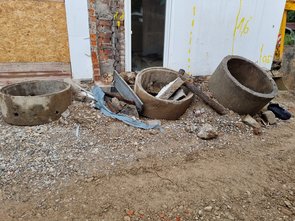 Auch im Altbestand wieder abenteuerliche Leitungsführung. Gut, dass wir alles neu machen!