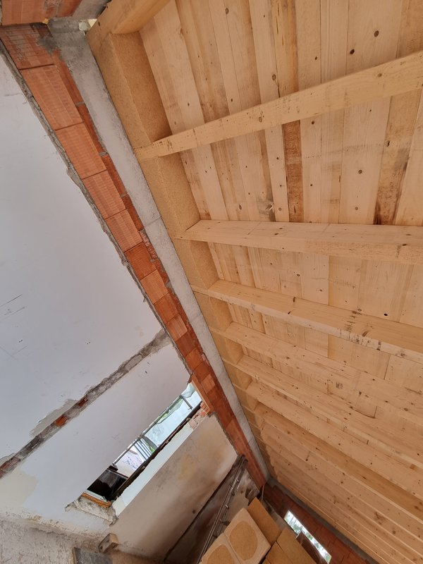 Erdgeschossaufbau, Dachsparrendämmung, Wohnzimmer freiräumen