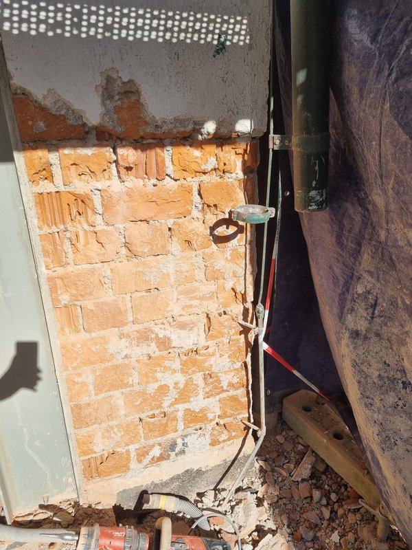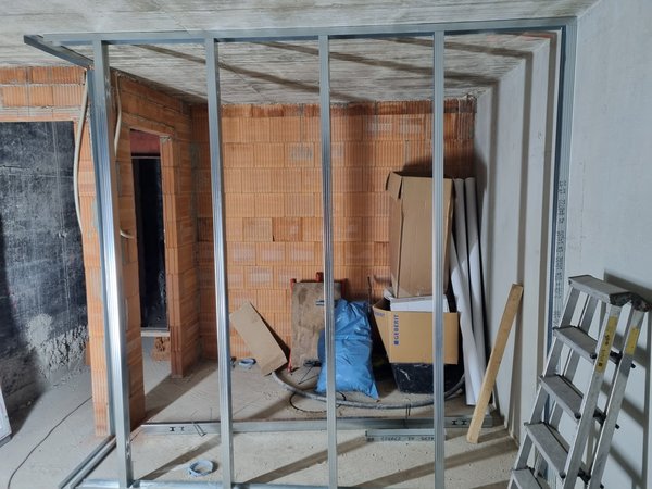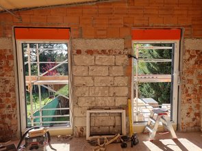 Heute leider außer Fenstern nicht viel fotografiert. Schlitze im Keller zum Fußbodenheizungsverteiler gestemmt. Küche und Speis ein paar Löcher runter gebohrt, um die Position zu sehen und zu schauen, obs funktioniert. Und mit Heizungsbauer die Schlitzbreite besprochen: 72 mm (!!!) sind die Küchenwasserrohre mit Dämmung. Nur 16 bzw. 20 mm, aber so brutal gedämmt, dass sie dann so dick werden!
