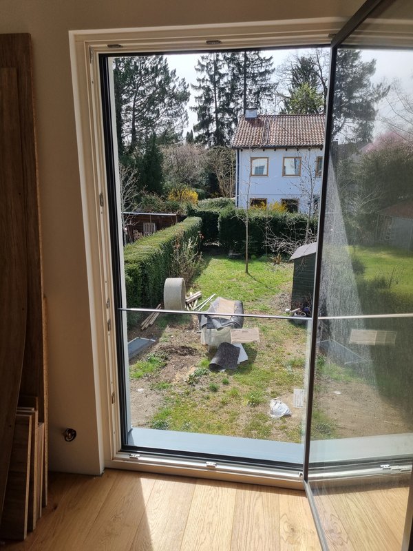 Fensterbauer kam, nach nicht mal 2,5 h waren die drei Abstursicherungen drin.