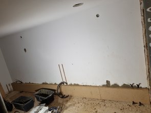 Eines der Top-Themen, damit verputzt werden kann, ist ja die Innendämmung. Damit heute endlich gestartet. War schon ganz schön viel Vorbereitung, Einrichtung etc. Aber das Prinzip geht ganz gut und den Klebe"schwung" hab ich jetzt auch raus. D.h. ab der nächsten Lage wirds dann deutlich schneller gehen :-)