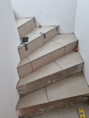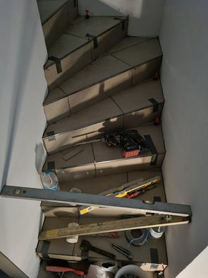 Fliesenleger haben heute die Kellertreppe fast fertig geschafft. Ganz schön mühsam. Sehr viele Schnitte. Trotzdem find ichs richtig, dass wir da Fliesen und nicht Holz o.a. gemacht haben.