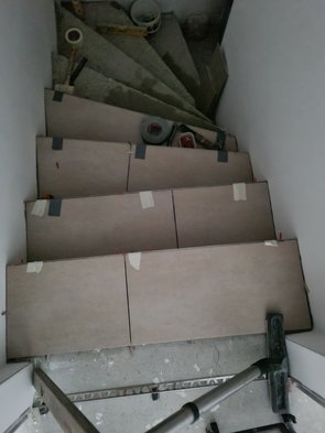 Kellertreppe geschliffen und angefangen, zu fliesen.