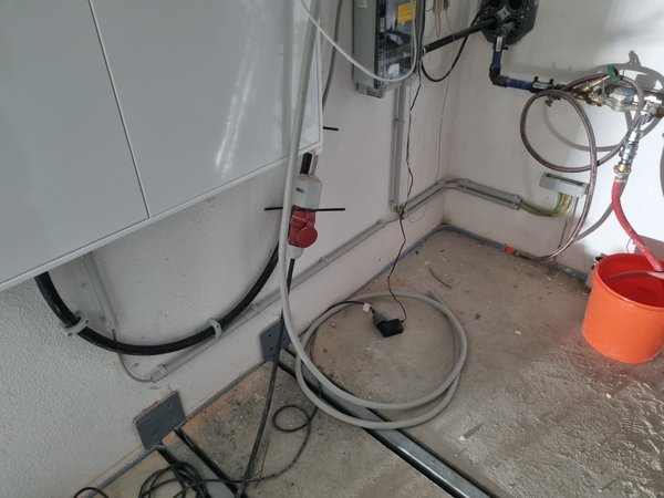 Beim Anschluss der Heizungs- und Wasserrohre dagegen bin ich nicht vorangekommen. Das haut so nicht hin. Wahrscheinlich brauch ich ein flexibles Kabel.