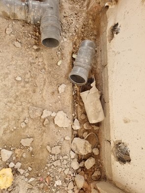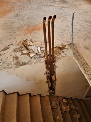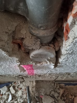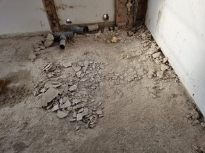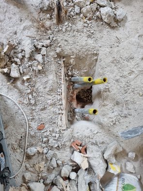 Auch die beiden in der Bodenplatte einbetonierten Leitungen freigestemmt (Kalt- und Warmwasser lagen direkt übereinander!).