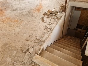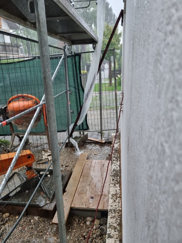 Während des brutalen Regens im Keller noch den Schutt der Fundamentüberstände weggeräumt.
