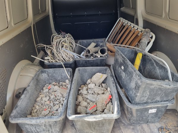 An sich keine gute Idee am Samstag Mittag zum Wertstoffhof (bummvoll, musste kurz warten, dann gings aber gut). Aber es waren wieder drei Wannen (Limit) Bauschutt beisammen. Und auch gleich noch Sperrmüll. Und die Kabel (ganze Wanne) und die vorhin ausgebauten Abwasserrohre auch gleich weg.