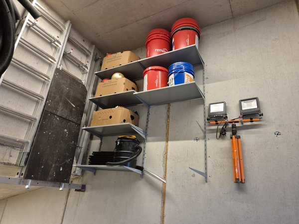 Dann noch Haken für die Baustellenleuchte angebohrt und alles eingeräumt.
