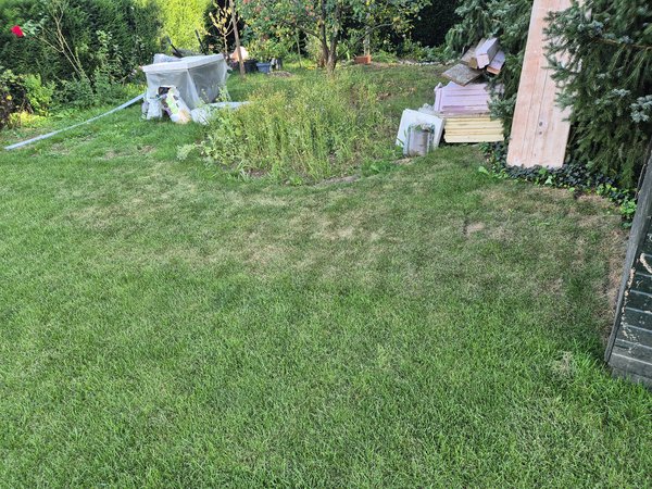 Muss ich gut gießen. Rasen haben die paar Tage, die ich nicht da war und nicht gegossen habe (der angekündigte Regen am Sonntag ist ausgeblieben bzw. war zu schwach), paar trockene Flecken gekriegt :-( Habs am Dienstag dann volle Kanne gewässert und heute Nacht solls genug regnen.