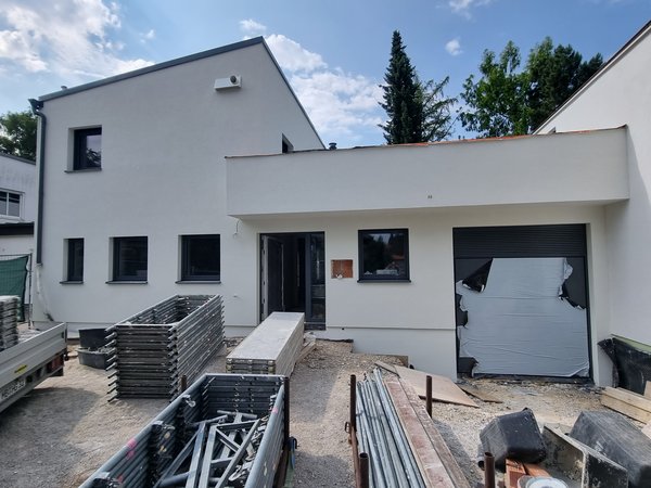 Gerüstbauer kamen ganz früh. Hab sie also beim kurzen Baustelleneinsatz vorm Urlaub noch gesehen. Bautenschutzmatten in den Keller geräumt, damit Putzer sie nicht dreckig macht. Eiben noch gegossen. Und ab gings heim.