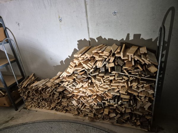 Das Holz ist eindeutig zu viel, um es nur als Anfeuerholz zu verwenden. Da werd ich im Winter immer mal wieder was verheizen. Ist kein besonders gutes Holz, von den alten Paletten.