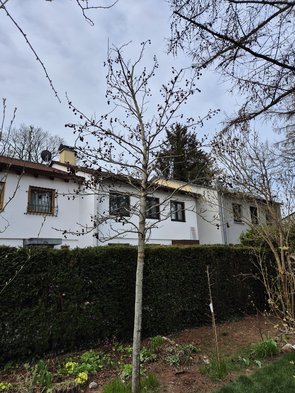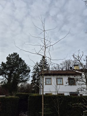 Baumschneider war heute endlich da und hat mir den großen Apfelbaum wieder bissl in Form gebracht, den kleinen auch bissl. Den Ginko hat er nur ganz leicht geschnitten. Den Amber aber gut in der Höhe gekürzt, dass der ned so hochschießt, sondern mehr in die Breite geht. Aprikose wollte er auch nicht viel schneiden. Dem und dem kleinen Apfel soll ich einen Pflocken zum Stabilisieren geben.