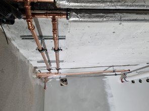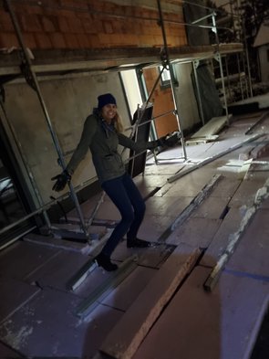Heizungsbauer, erste Fußbodenschlangen, behelfsweise Dachterrassendämmung