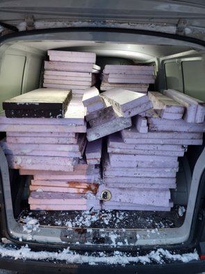 Damit wir nicht völlig Pleite gehen, bei ebay Kleinanzeigen nach billiger, gebrauchter Dämmung gesucht. Fündig geworden. In Kirchheim, hatte gestern aber keine Zeit. Nicht ganz die Menge, die wir brauchen, aber 3/4. Also heute geholt und mit Anna dann ausgeladen und aufgelegt. Ging erfreulich zügig. Mal schaun, obs was bringt. Bissl was muss es ja bringen.