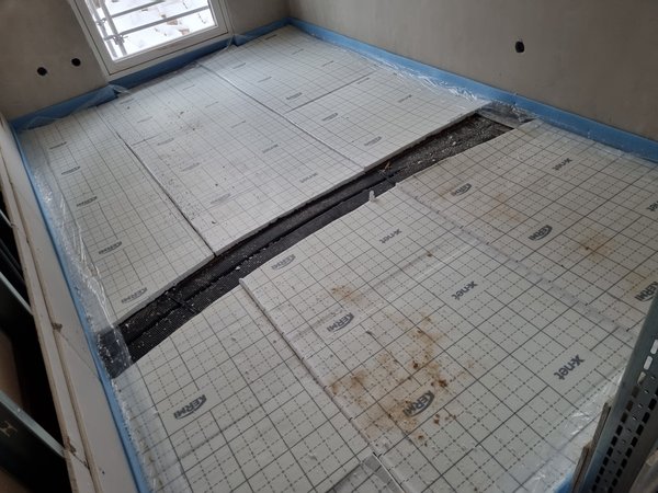 Im OG-Bad dann noch den Randdämmstreifen angebracht.
