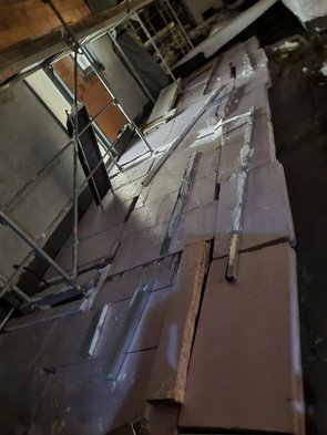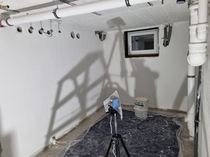 Damit die gebundene Schüttung trocknen können, hab ich vor der Mittagspause dann noch das westliche Kinderzimmer mit Kermiplatten fertig belegt und die gebundene Schüttung auf die Querung mit dem Lüftungsrohr aufgebracht.