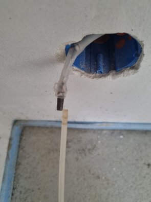 Ich wollte "einfach" mal ein 3 x 1,5 mm2-Kabel einziehen. Sollte meeeega einfach gehen. War es aber nicht. Immer paar Zentimeter vorm Ziel riss was ab. Irgendwann wars dann endlich drin. Gefühlt eine Stunde für eine Steckdose!!! Dann versucht, das Leerrohr zu finden, dass nach außen gehen sollte. Dazu dann erstmal die Steckdosen im Esszimmer verdrahtet. Es ging alles soooooo streng, obwohl es nur 5 x 1,5 mm2-Kabel sind. Apropos abreißen: mir sind dann BEIDE Durchzugskabel abgerissen. Erst Papas altes Teil und dann das neue.