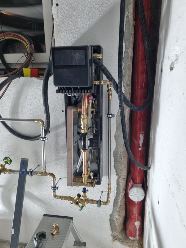 Viessmann hat "vergessen", Zirkulationspumpe zu liefern: "optional". Keine Ahnung, wie die auf diese Idee kamen. Quasi-Neubau ohne Zirkulation?! Wird nachgeliefert, ist auf Lager :-)