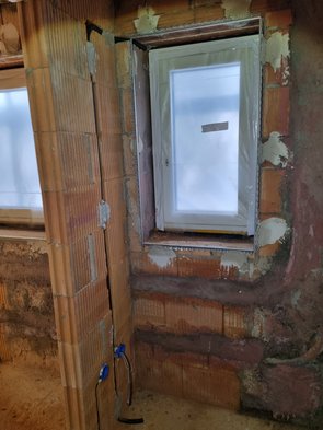 Meine Bitbox ist leider immer noch verschollen, aber Ersatz mitgenommen. Also konnte ich die OG-Türen putzfertig machen - auch laibungsseitig sind die jetzt fixiert.