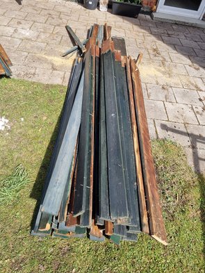 Die Zeit danach dann noch bis Mittag genutzt, weiter Holz zu entfernen. Vorderseite ist jetzt fast fertig. Rückseite dann aus dem Kinderzimmerfenster noch bissl was geschlagen. Sitzt teils brutal fest. Blödste Stelle von allen. Man kommt von oben und von unten schlecht ran. Hilft nix, muss runter. In zwei, drei weiteren Etappen werd ichs dann haben.