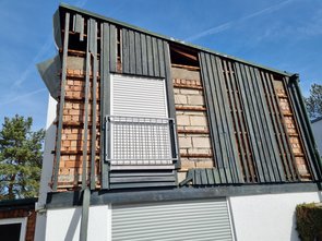 Auf der Westseite kann ich es nur teilweise machen, da sonst beim Nachbarn Wasser reinläuft. Das machen wir dann live, wenn der Spengler kommt und gleich die neue Verblechung vornimmt.