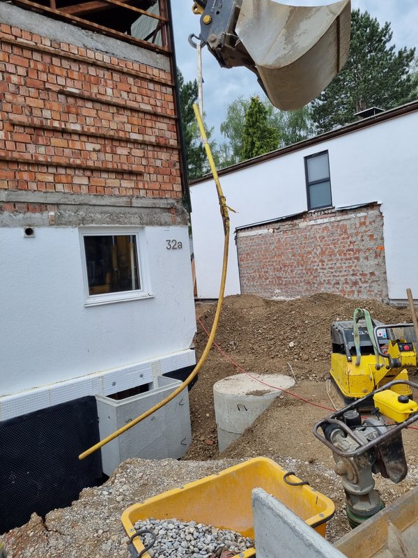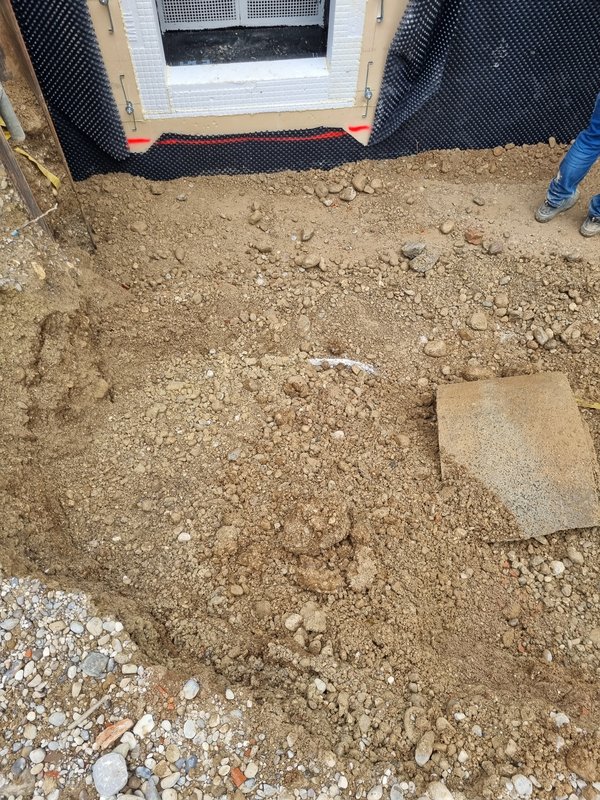 Zum Glück ist mir gestern Nacht noch eingefallen, dass der Ringerder beim Abriss beschädigt wurde bzw. wohl nie ganz bestand. Da wir jetzt Perimterdämmung haben und das Haus bis auf die Wand zu den linken Nachbarn keinen direkten Erdkontakt mehr, brauchen wir das gscheit.