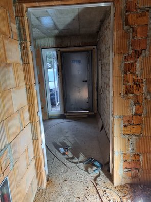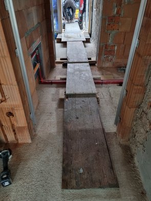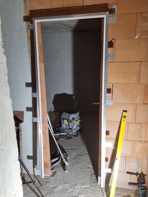 Und dann ganz am Ende noch eine negative Überraschung: wir haben die Vorratstür verbreitert und offenbar nicht der Baufirma gemeldet. Zum Glück ist Sturz mit genug Puffer gesetzt worden, so dass noch korrigiert werden kann. Am Abend gleich Baufirma geschrieben, weil die dafür die definitiv besseren Maschinen haben.