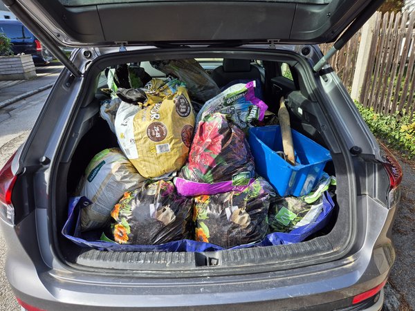 Auch wenns Zeit gekostet hat: Auto voll mit dem ganzen Gartenmüll und ab zum Wertstoffhof. Mit Audi (Landkennzeichen) dort gewesen. Kontrolliert worden. Auch haben sie kurz gemault, ob da Erde drin ist. Durfte dann aber problemlos abladen. Daneben schleicht sich ein Pole rein, der nicht kontrolliert wird. Und ein großer LKW hat Großmengen abgegeben. Die letzten zwei Jahre fand ich die Jungs da drüben echt gut. Aber heut... Hauptsache: mein Gartenmüll ist weg. Hätte im Nachhinein noch zwei Eimer vom Dreck im Lichtgraben mitnehmen sollen. Aber irgendwie krieg ich den schon über die Mülltonne weg.