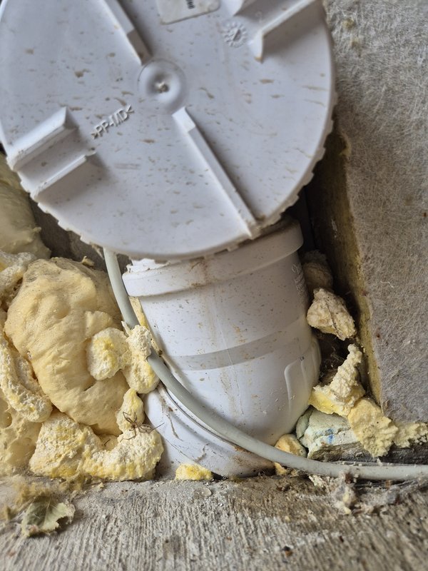 Bei jedem stärkeren Regen hatte ich an der Garagenrampe ziemlich weit oben in der Nähe des Dachterrassen-Regenfallrohrs eine mehr oder wenig große feuchte Stelle. Immer wieder das Rohr angegriffen, alles trocken. Ich hatte den untersten Bogen im Verdacht, konnte aber eigentlich nicht sein. Sprach mehr dagegen als dafür. Ich habe NIE gesehen, wo Wasser getropft ist.