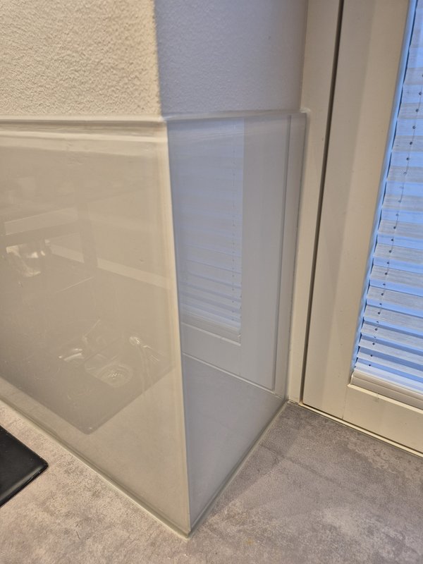 Küchenrückwand kam das nötige Silikon vor paar Tagen. Muss bei Tageslicht gemacht werden, daher Mittags gemacht, als ich keinen Krach mehr mit der Kettensäge machen konnte. Farbton war ich trotz Farbmuster bissl unsicher, aber absoluter Volltreffer. Wollte eigentlich noch weißes Silikon für oben drauf bestellen. Zum Glück vergessen. Das transparente schaut da 2 x geiler aus :-)