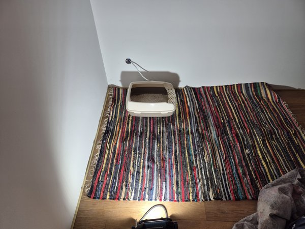 Die Tatsache, dass ich Krach machen konnte, es nicht geregnet hat und Mama Zeit hatte, genutzt, dass ich im Gästezimmer weiterkomm. Malervlies entfernt, gesaugt inkl. Rändern und die Parkettleisten zugeschnitten und eingepasst. Bis zum Fenster sind wir schon mal gekommen und der neue Katzenkloteppich hat Platz.