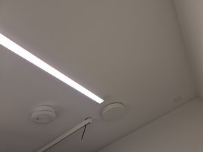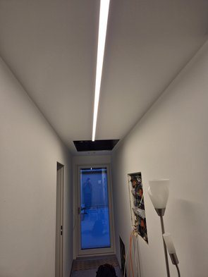 Flurleuchte fertig montiert (diesmal aufgepasst, dass mir Leerrohr nicht wegrutscht), angeschlossen und programmiert. Auch gleich auf den richtigen Bewegungsmelder programmiert. Eeeeeeeeeeendlich hab ich also gscheit Licht, wenn ich hochkomme :-)